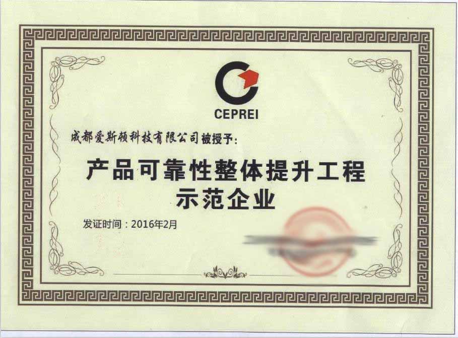 産品可靠性整體提升工(gōng)程示範企業(yè)