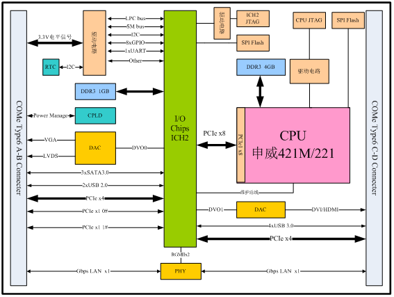CPB0076是一(yī)款以國(guó)産申威421M四核處理器(qì) 申威221雙核處理器(qì)為(wèi)核心,高(gāo)可靠性和高(gāo)效能(néng)的COM Express模塊化計算(suàn)機(jī),兼容PICMG(PCI In