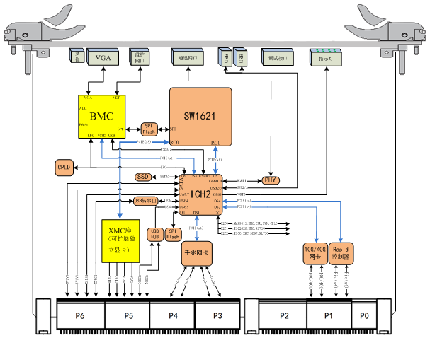 外圍接口 | 前出接口: l 1x 千兆以太網接口 l 2x USB2.0接口 l 1x VGA顯示接口 l 8x 指示燈接口 l 1x HJ30J(含1路(lù)FPGA JTAG、BMC管理網口) l 1x 複位按鈕 後出接口: l 2x 10G\40G 以太網接口 l 2x RapidIO v2.1(x4) 接口 l 4x 千兆Serdes接口; l 2x USB2.0接口 l 2x 串口(1路(lù)RS232接口,1路(lù)RS422接口) l 2x VGA顯示接口(帶XMC獨顯後) l 2x DVI顯示接口(帶XMC獨顯後) l 4x 單端GPIO接口 l 2x SATA3.0接口 l 2x I2C接口 |